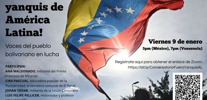 Desde México, el espacio Tejiendo Luchas organiza este conversatorio virtual con voces venezolanas del pueblo bolivariano en lucha, «Fuera yankis de América Latina».