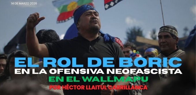 CompartirFacebookTwitterWhatsappPrintEmailWallmapu, 14 de marzo de 2026 | Por Héctor Llaitul Carrillanca La administración Boric será recordada como la peor de los gobiernos postdictadura para la lucha del Pueblo Nación Mapuche. Al hacer un balance de las acciones desarrolladas por su gestión destacan: – Militarización del Wallmapu a través de los belicistas Estados de Excepción, que … Sigue leyendo El rol de Boric en la ofensiva neofascista en el Wallmapu. Por Héctor Llaitul Carrillanca