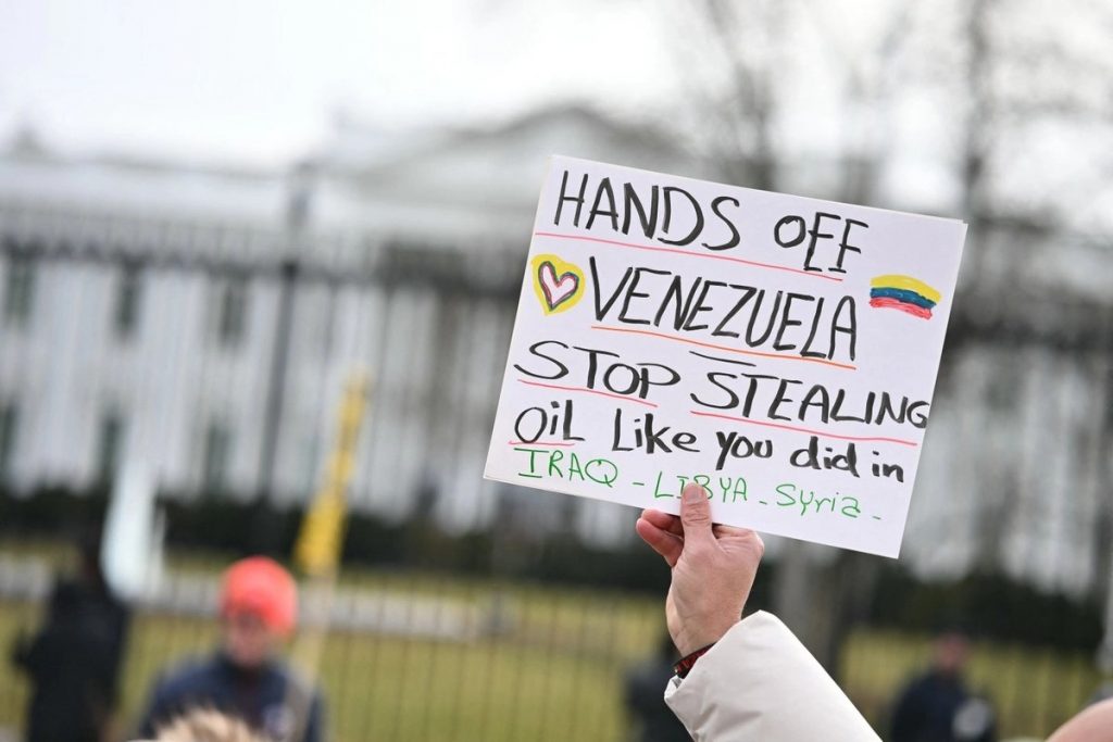 3 de enero de 2026 | Fuente: La Jornada | Foto: Protesta contra la acción militar estadunidense en Venezuela en la Plaza Lafayette, frente a la Casa Blanca en Washington, D.C., el 3 de enero de 2026. Foto Afp
